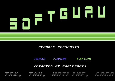 PROUDLY PRESENSTS SINBAD - THRONE OF FALCON (CRACKED BY EAGLESOFT) !"#$%&' - PROUDLY PRESENSTS SINBAD - THRONE OF FALCON (CRACKED BY EAGLESOFT) > SINBAD AND THE THRONE OF THE FALCON < IMPORTED BY SOFTGURU IMPORTS AND BODOSOFT. HALLO TO APC AUSTRIA AND TO: MACHOKID (C-C), SIR 13, CHAMP, WHIZZARD, JOHN PLAYERS SPECIAL, TAC, TSK, TAU, HOTLINE, COCO, WESTITRONIC, GARFIELD, DNS, TMC (ALI), NASA, NEW FRENCH CRACKERS, TWO FRENCH, ACS, TAN, SOFTTIGER-CREW, PROFIL COMPUTERSOFT (THE NEW MEMBER OF SOFTGURU IMPORTS) AND LAST, BUT NOT LEAST THE DIGIVISION CLAN. NEW SOFTWARE ? - WRITE TO: SOFTGURU, POSTFACH 69, 1217 VIENNA, AUSTRIA . -