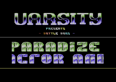 PRESENTS - BATTLE BARS - FBCD - 1267812 CD - PRESENTS - BATTLE BARS - - CODE:CHARLIE LOGO:B.A. FONTS:T. ELEGANCE - INTRO BY CHARLIE - AGHIEJKHI<J= >HIEJKHIEJ= - AGHIEJKHIEJKHI EJKH - VLMTUVLQWOPLQWOP LQWO - ... TODAY WE PRESENT YOU !BATTLE BARS! FROM ZAPP! THIS IS A GAME CODED BY JUNEBUG OF LEGEND WHO ALSO DID THE MUSIC FOR IT. THE GFX WERE DONE BY ARTIX OF PARADIZE ... ALL IN ALL A NICE BUDGET BUT REALLY NOTHING SPECIAL AT ALL ... - GREETS TO EMPIRE, NEI, TSM, SUCCESS, ILLUSION, DOMINATORS, LEGEND, TALENT, HYSTERIC, ARCADE, CHROMANCE, FAIRLIGHT, COSMOS DESIGNS, FACES, LIGHT, MAYHEM, GENETIX, F FOUR CG, TRC, VISION, UNICESS, BASSLINE, XRATED, XFACTOR AND DA STEADY REST ... - OPQRSTUVWXYZ[AYZ[AO/]U^_ !BN - AN ELECTRIC BRAINS PRODUCTION! M - MADE FOR ZZAP SIXTYFOUR 2 - MARTIJN SCHUTTEN GRAPHICS.T - NIKAJ EIJK MUSIC.Q - MARTIJN SCHUTTEN PLAYER AND SOUNDS.K - OPQRSTUVWXYZ[AYZ[AO/]U^_ !BN - AN ELECTRIC BRAINS PRODUCTION! M - MADE FOR ZZAP SIXTYFOUR 2 - MARTIJN SCHUTTEN GRAPHICS.T - NIKAJ EIJK MUSIC.Q - MARTIJN SCHUTTEN PLAYER AND SOUNDS.K - PRESS SPACE TO PLAY # -
